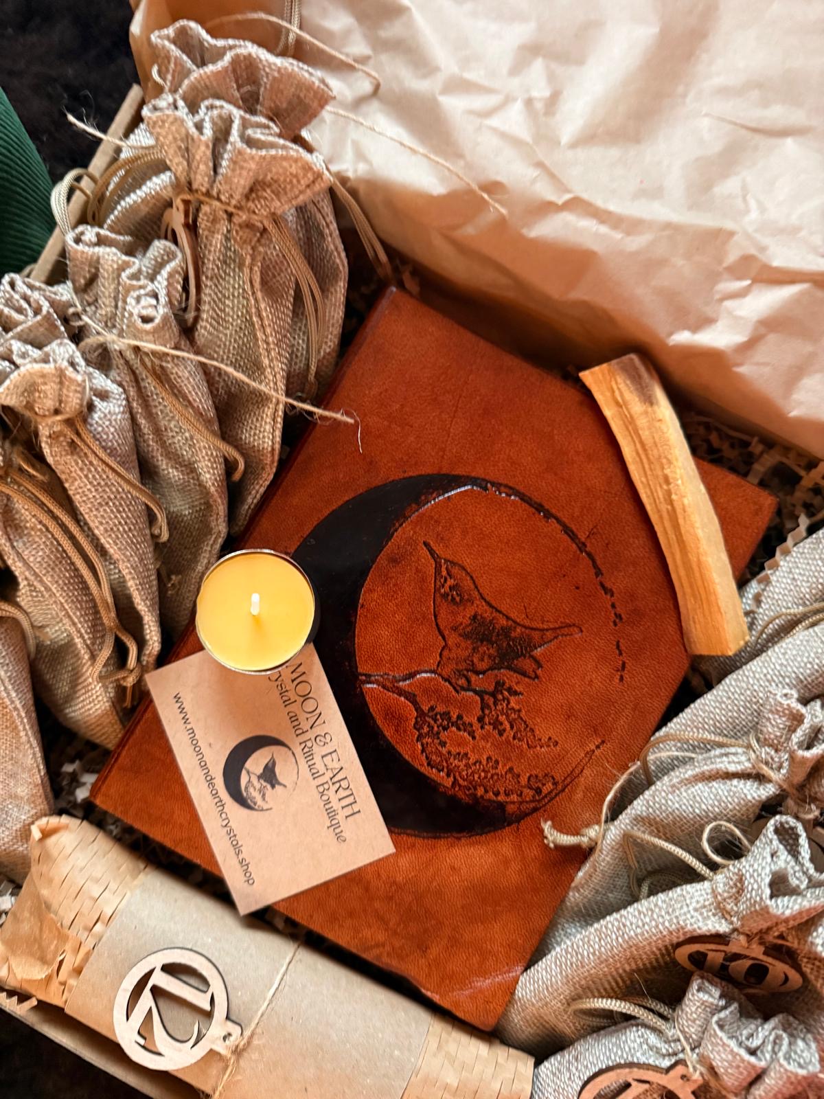 - If you’re vegan and would prefer not to receive the leather journal or beeswax candle, that’s absolutely fine, just pop a note at checkout and we’ll include an extra little surprise in their place.
