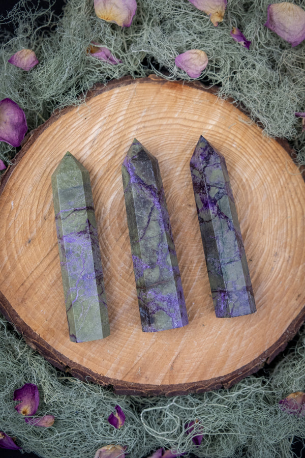 Unearth the deeply healing energies of this Atlantisite crystal point – a rare and powerful fusion of green Serpentine and purple Stichtite. This unique combination creates a deeply grounding yet spiritually elevating energy that reconnects you with ancient wisdom and emotional wholeness. Atlantisite is a stone of heart healing, divine protection and access to past life insights, making it a beautiful companion for spiritual seekers, inner child healing and soul retrieval work. Whether placed on your altar, used in meditation or held during journaling, this crystal supports you in anchoring compassion, releasing fear and tuning into your higher guidance.