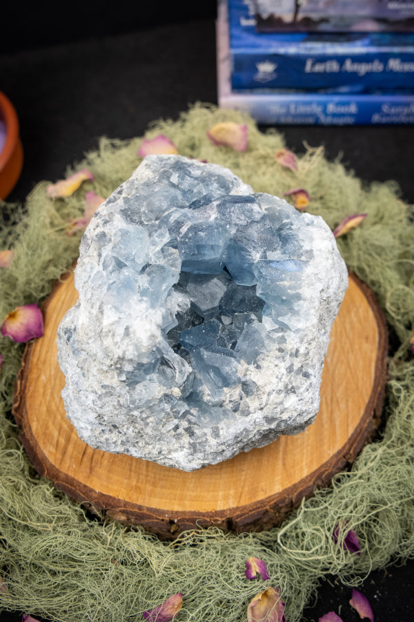 Celestite crystal is a gentle, high-vibrational crystal that connects us to our Angels, Divine Energies, and Higher Self.