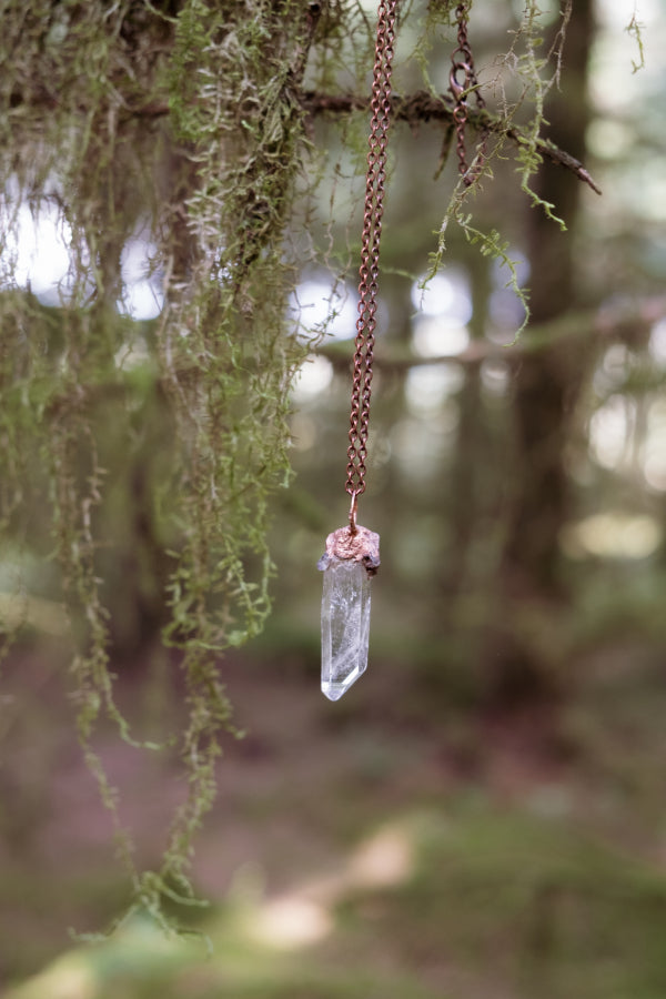 Clear Quartz and Copper Pendant, Electroformed Crystal Necklace, Raw Quartz Gemstone, Healing Energy Amplifier Stone.