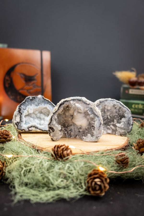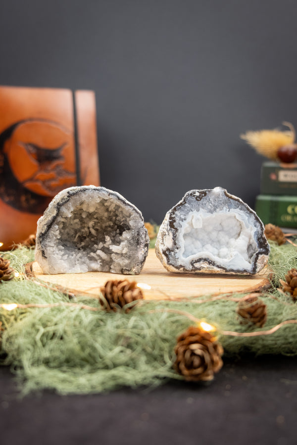 Each Brazilian Druzy Chalcedony Geode is a calming sanctuary of soft light blue energy, filled with delicate sparkling quartz crystals that catch the light like morning frost. Known for its gentle yet deeply balancing vibration, Druzy Chalcedony encourages emotional harmony, peace of mind and spiritual stillness. Its soothing energy helps dissolve tension, stabilise mood and quieten an overactive mind, making it a beautiful ally for meditation, healing work and peaceful home energy.