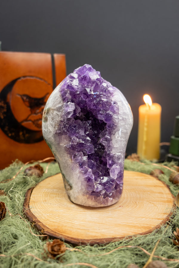 This Amethyst was ethically sourced from the mineral-rich lands of Brazil, a region celebrated for its world-class crystal formations and spiritual energy.