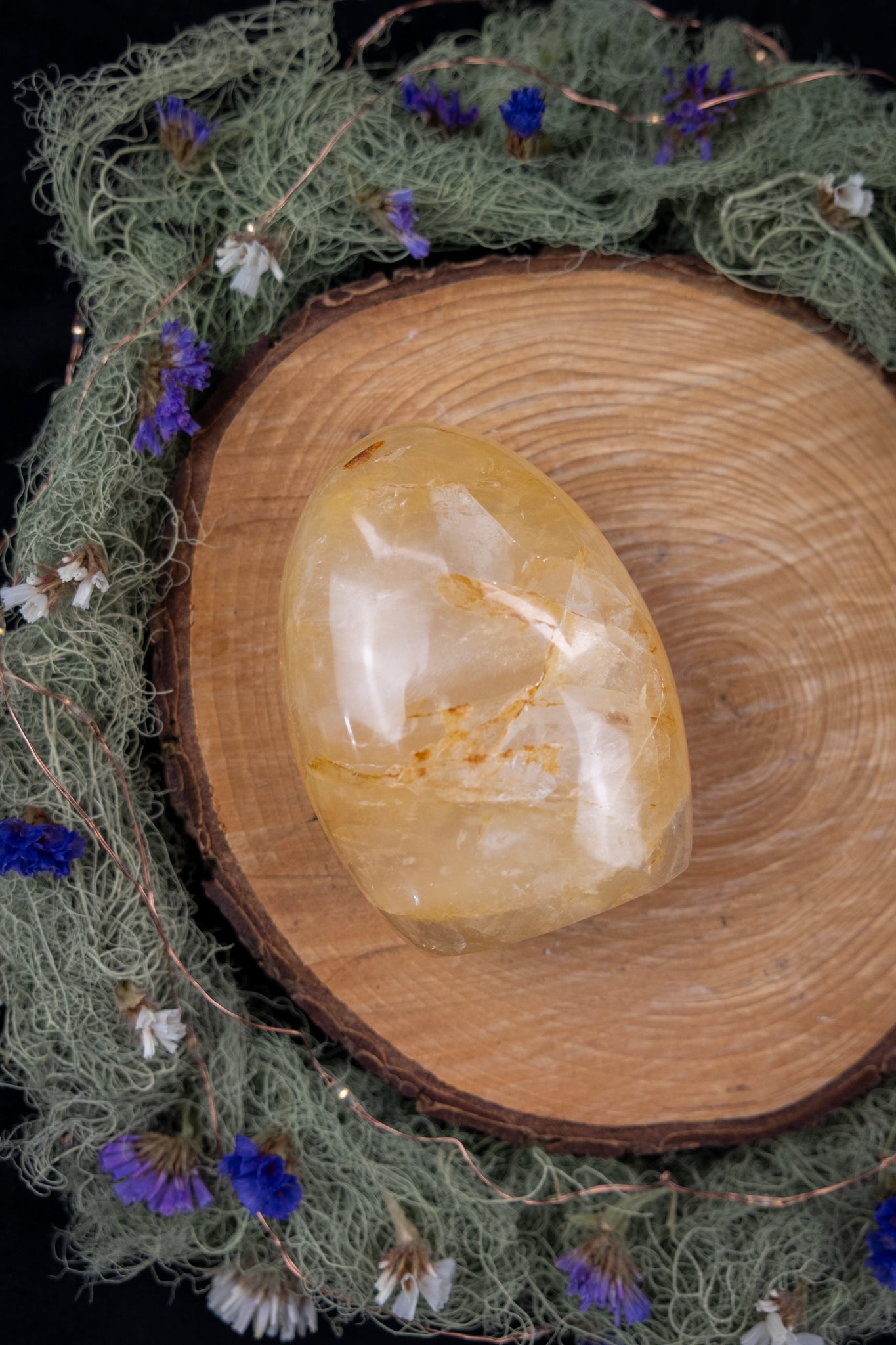 This Golden Healer freeform works beautifully as a daily support crystal. Place it somewhere visible in your home as a reminder to stay grounded and connected to yourself. It can be held during quiet moments or meditation, allowing its softer energy to support emotional release and clarity. Because of its gentle nature it is also a good piece to have nearby during times of stress or transition. You could also work with it intentionally by setting a simple focus such as inviting in clarity or calm and returning to it throughout the day.