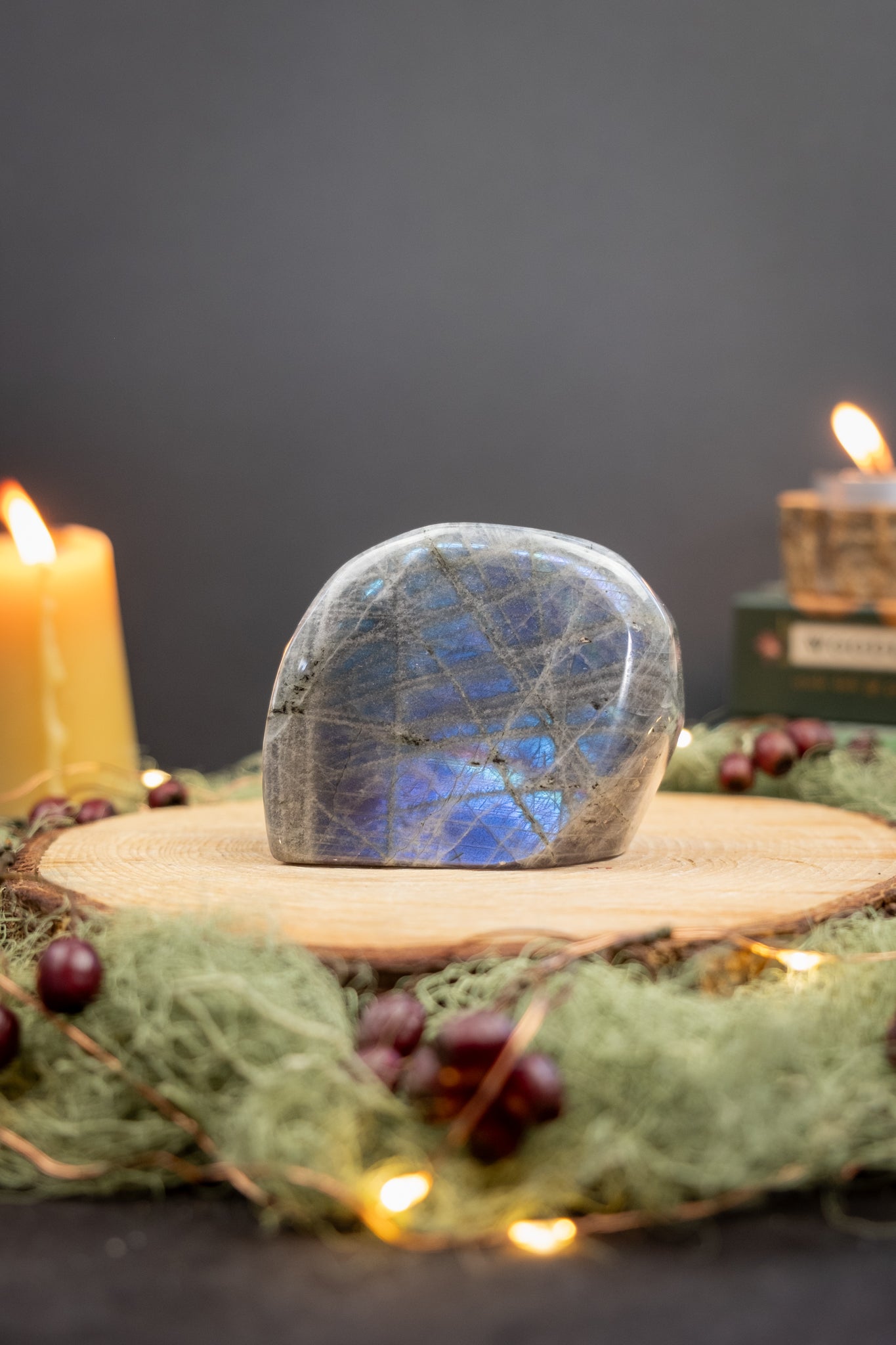 Labradorite is known as the stone of magic, intuition and unseen possibility. This rare blue and purple flash variety amplifies that energy even further. The vivid blue flash strengthens insight and clarity, helping you trust your inner voice with confidence. The rare pink and purple flash activates higher spiritual awareness, supporting deep intuition, dream work and connection to the unseen. When these seams merge they create a crystal that bridges earthly guidance with higher wisdom, making it a beautiful ally for transitions, visioning and soul alignment.