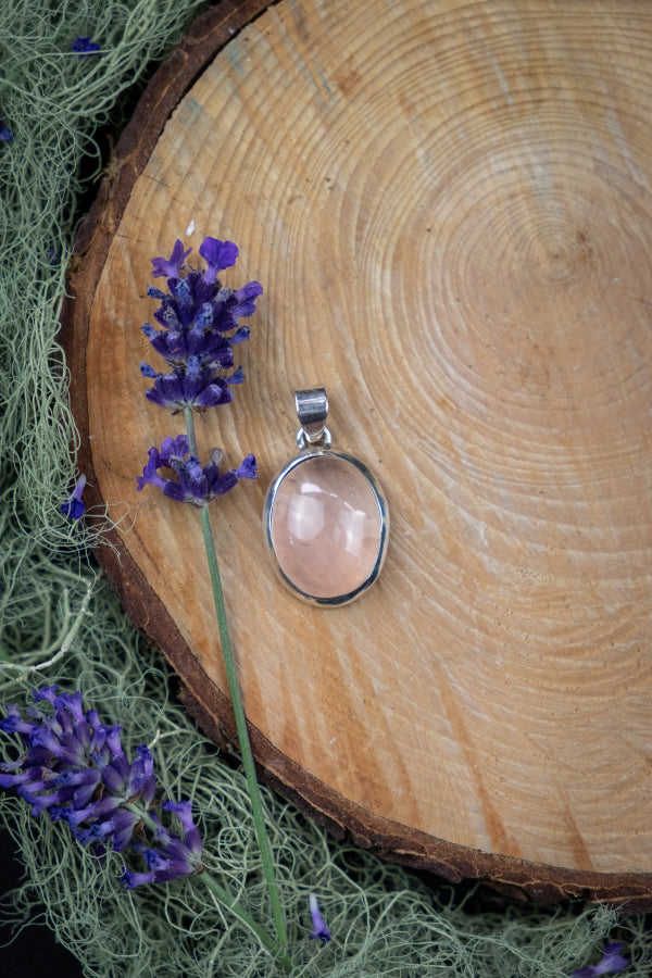 High Grade Rose Quartz Pendant – Sterling Silver Setting, Radiating Love and Emotional Healing