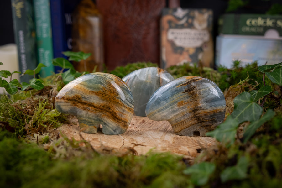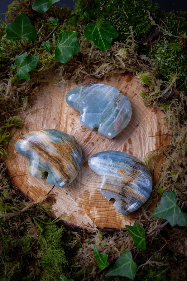 Lemurian Aquatine Calcite Crystal Totem Bear are hand carved and used for guidance and inspiration. Bears are often associated with strength, healing, and wisdom in Native American mythology and are considered a symbol of grounding forces in the spirit kingdom. Whilst Lemurian Aquatine Calcite soothes the nervous system and is said to heal the entire energy system down to a cellular level.