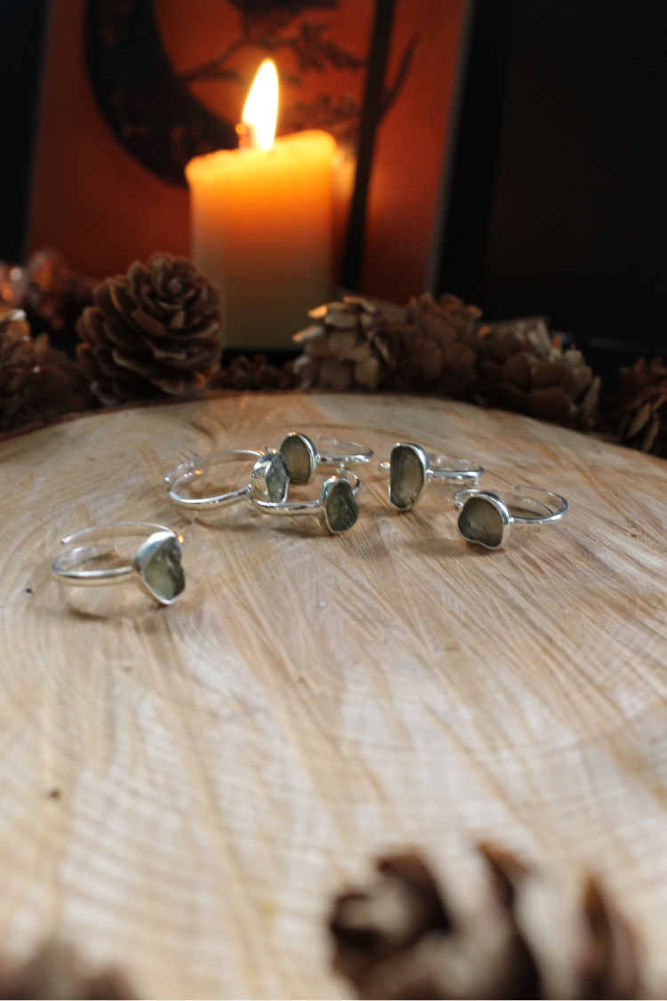 Wearing Moldavite as a ring keeps its energy close to your aura and heart field, amplifying intentions and creating a constant reminder of your journey. It is particularly supportive during times of change, spiritual exploration and personal transformation.