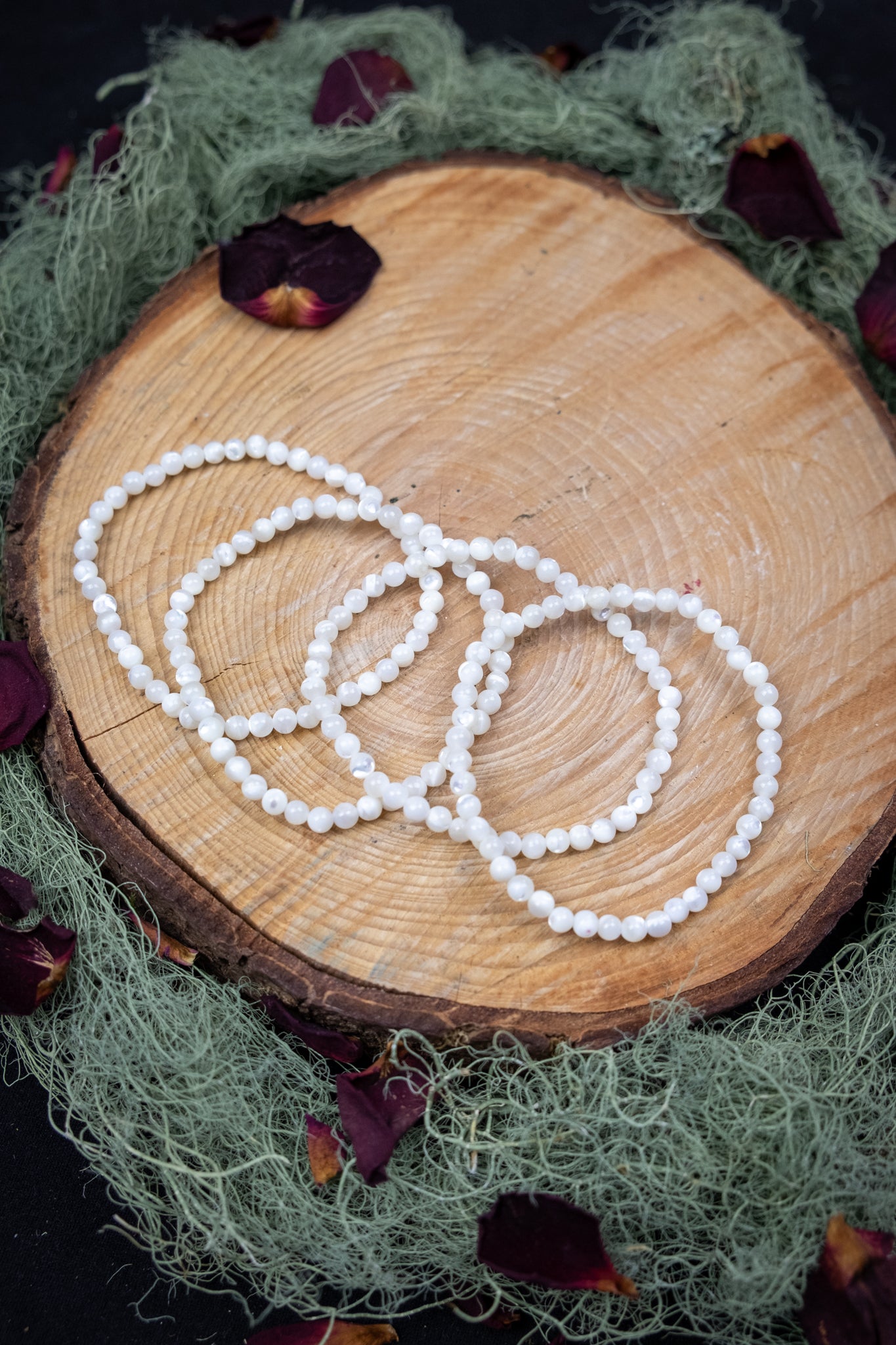 Mother of Pearl Crystal Bracelet, 4mm Gemstone Beads, Nurturing Energy, Calming Stone of the Sea, Intuitively Chosen