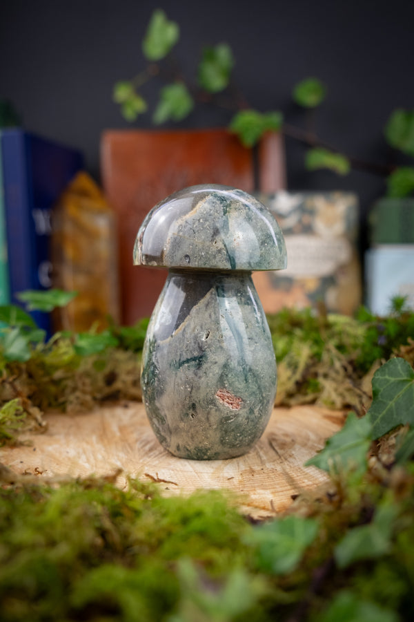 This Ocean Jasper toadstool is a joyful piece of natural art, bringing together the grounding magic of mushrooms with the uplifting energy of this rare and colourful crystal. Known as the stone of renewal and positivity, Ocean Jasper carries the vibrant energy of the tides, washing away stress and inviting joy, flow and a fresh perspective. It is a beautiful piece to bring lightness into your home or to work with in meditation, intention setting or crystal healing practices.