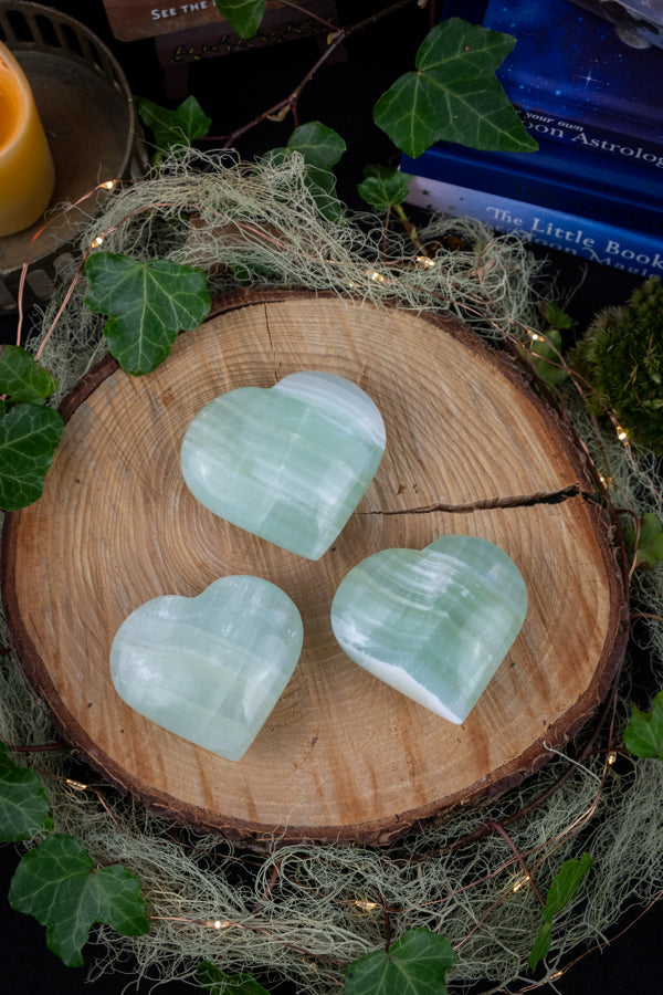 Hold your Pistachio Calcite heart during meditation to open and heal the Heart Chakra.