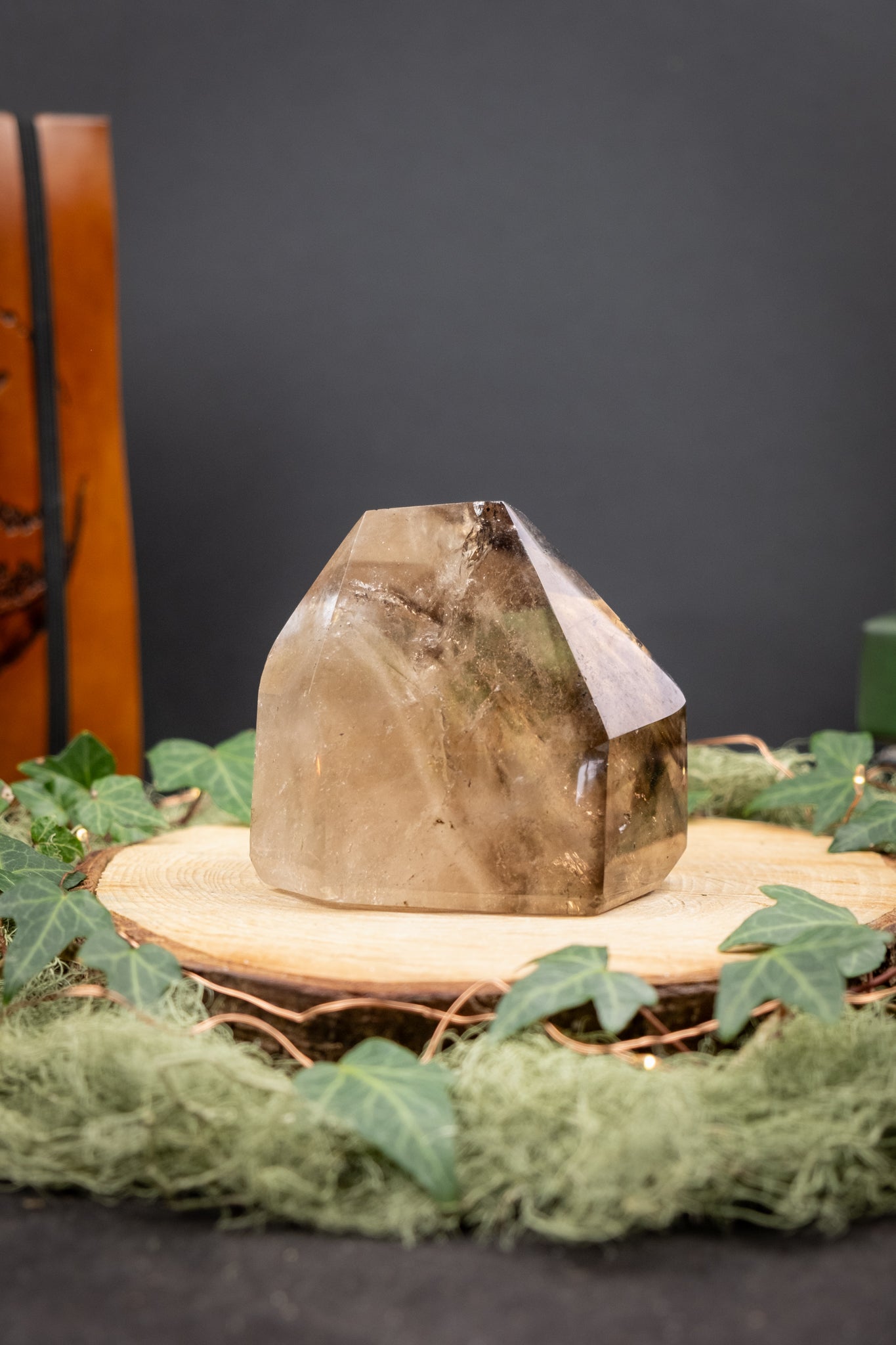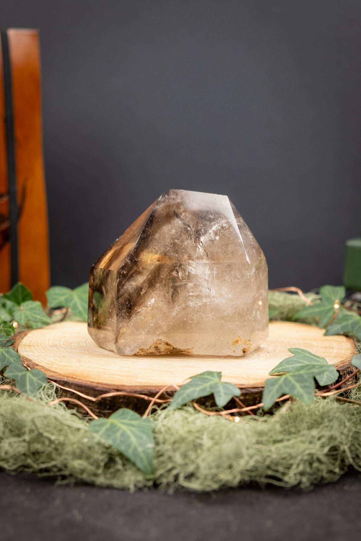 Polished Smokey Elestial Quartz with Hematite Inclusions and Phantoms, Goddess Stone, Grounding Clarity and Divine Balance Crystal