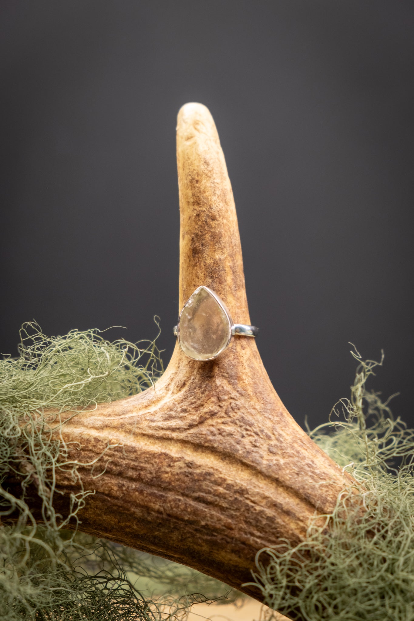 Rare Libyan Desert Glass Ring, Sterling Silver Crystal Ring, High Grade Yellow Tektite Gem Stone Jewellery, One of a Kind Size N