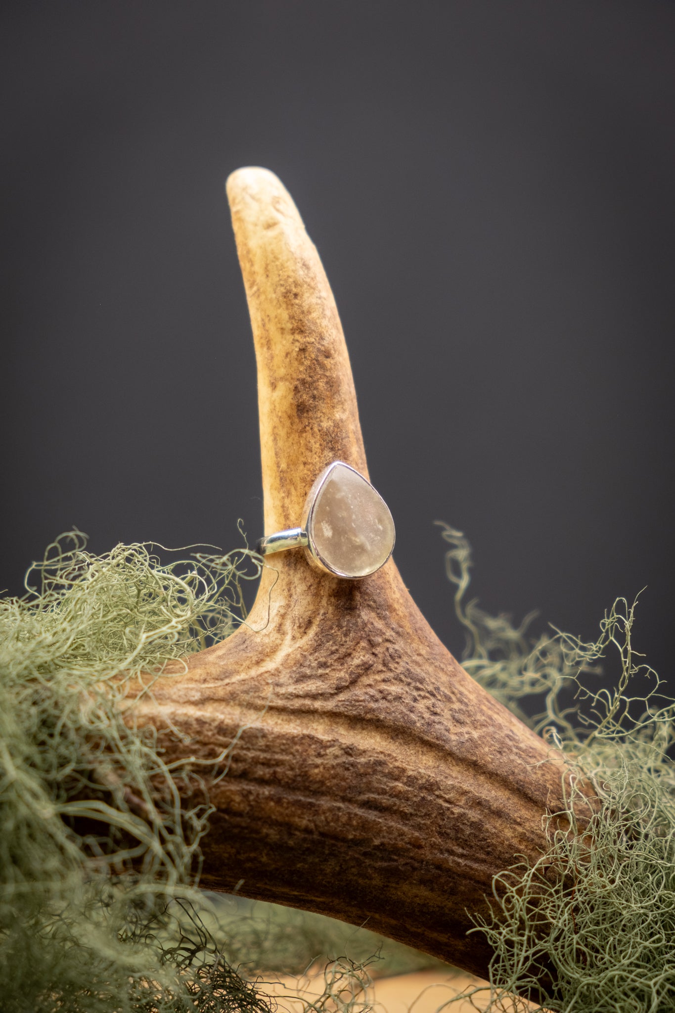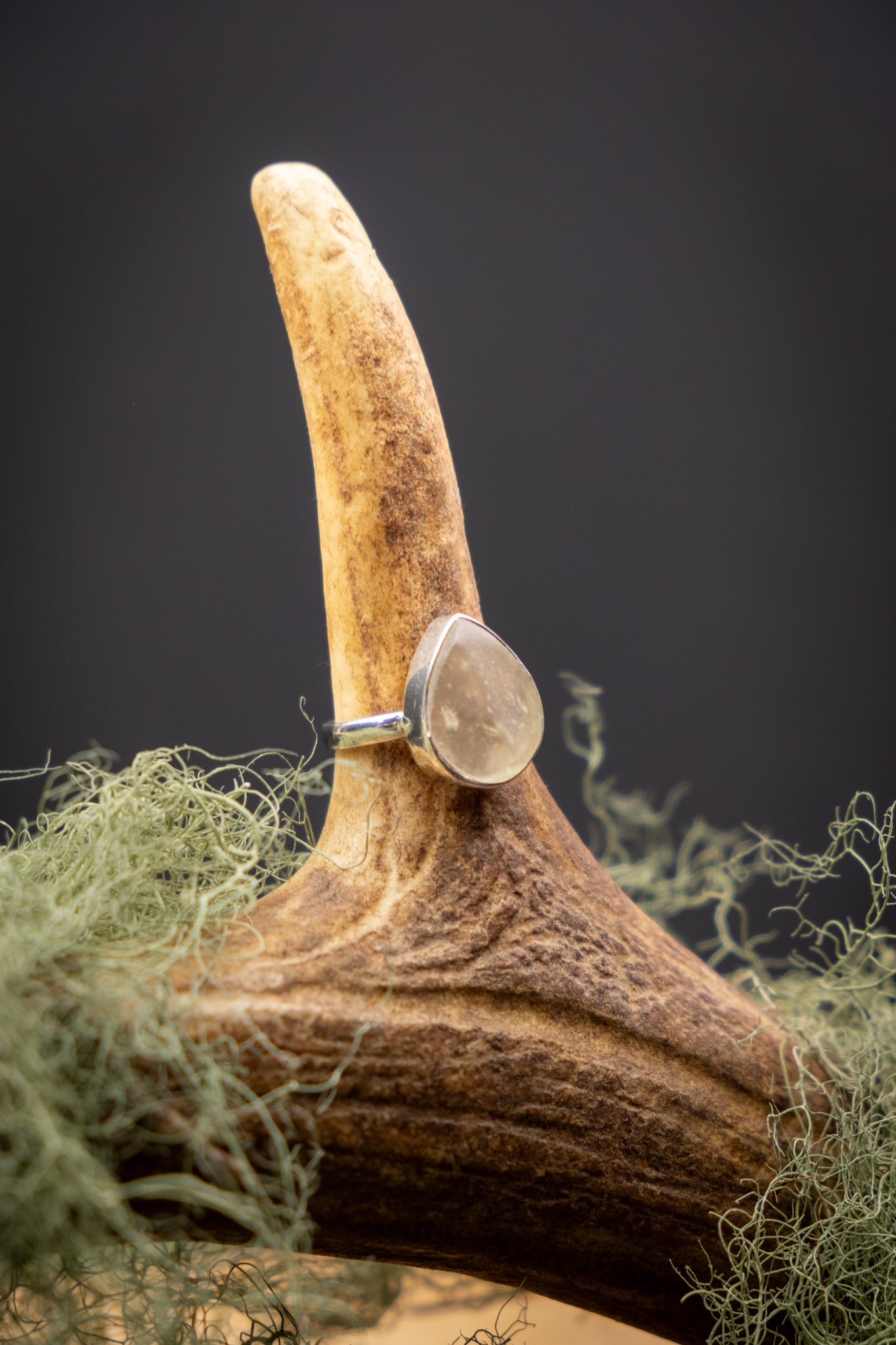 Rare Libyan Desert Glass Ring, Sterling Silver Crystal Ring, High Grade Yellow Tektite Gem Stone Jewellery, One of a Kind Size T