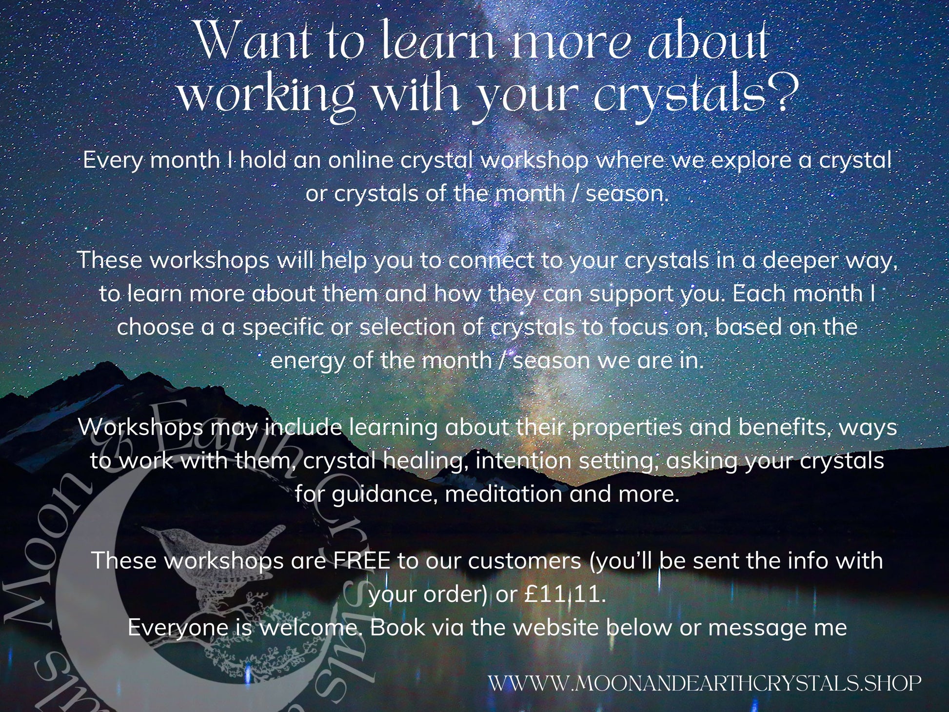 All crystals are cleansed and charged by Reiki energy (by myself) before they leave us and travel on their way to you.