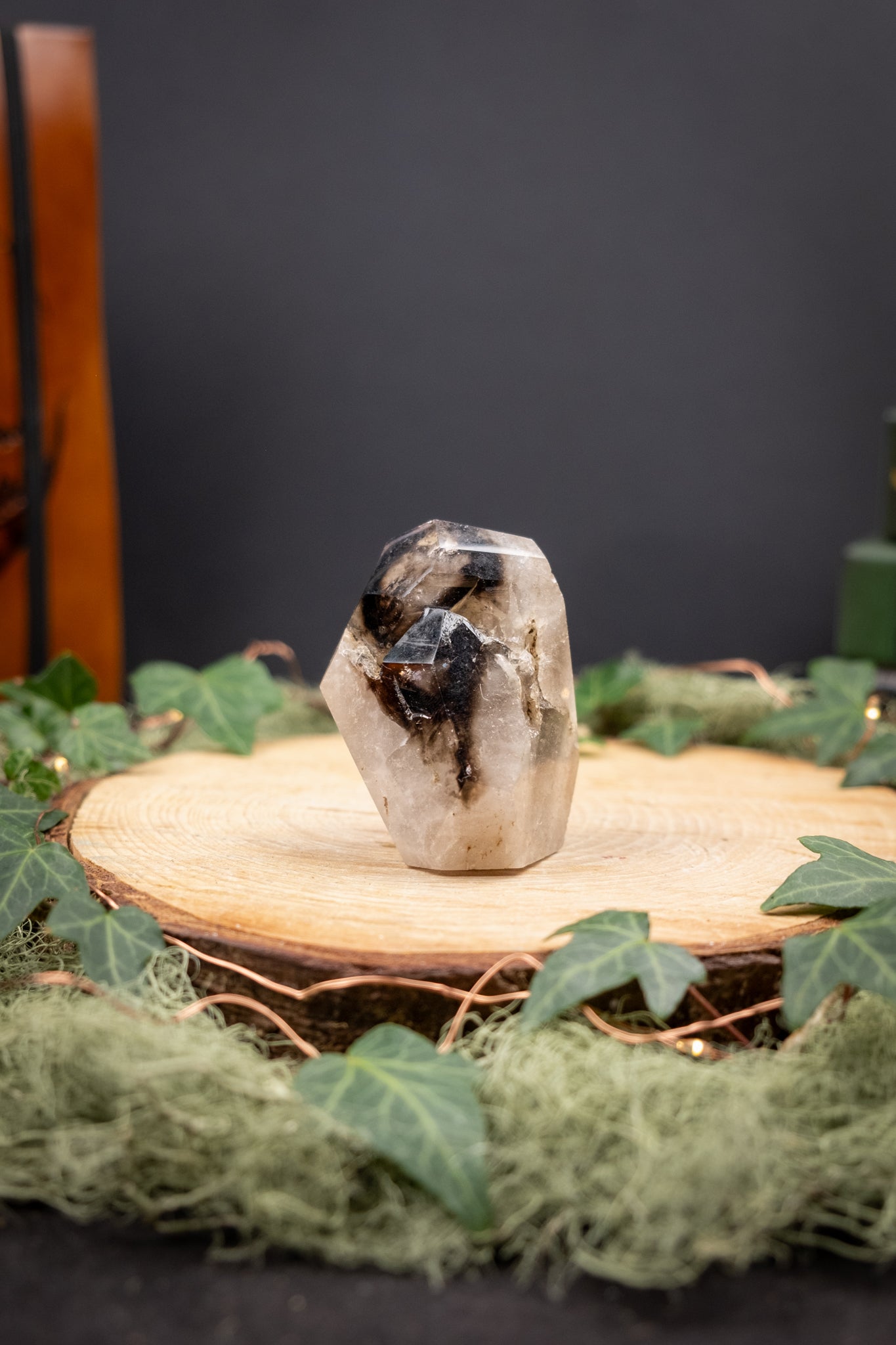 High Grade Smokey Elestial Quartz Freeform, Polished with Natural Phantom Formations for Deep Grounding and Energetic Protection