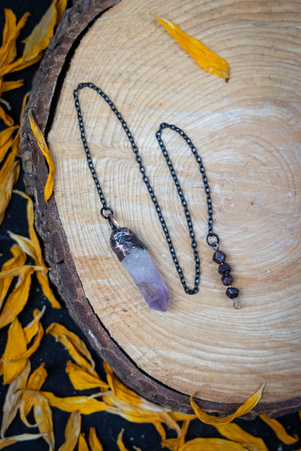 High Grade Vera Cruz Amethyst Copper Pendulum – Handmade Dowsing Tool for Intuition, Clarity and Spiritual Connection