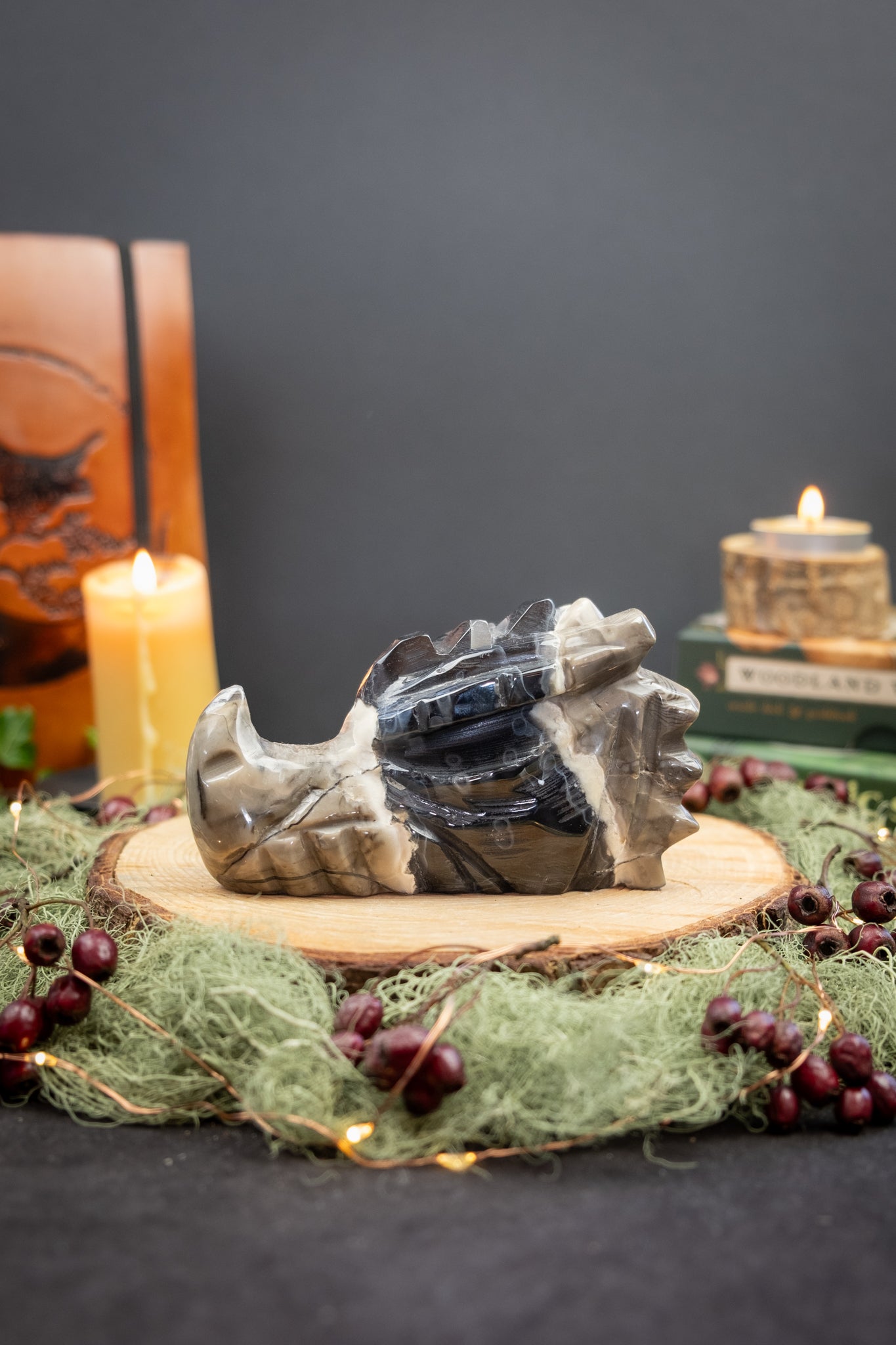 Place this dragon head near your front door as a guardian presence or in a sacred space where you set intentions. During meditation, visualise its energy wrapping around you like protective wings. If you have a UV light, gently illuminate it and reflect on where your own hidden light is waiting to be seen. This piece works beautifully as a focal point during intention setting rituals centred on courage, strength and stepping into your next chapter.