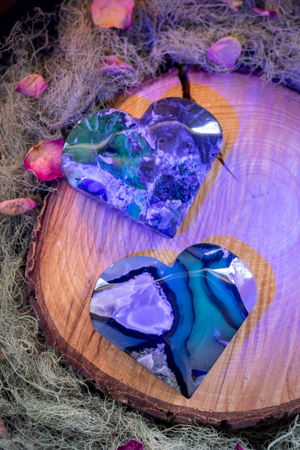 Volcano Agate Heart Crystal Stone, Natural UV Reactive Gem, Healing and Grounding Energy