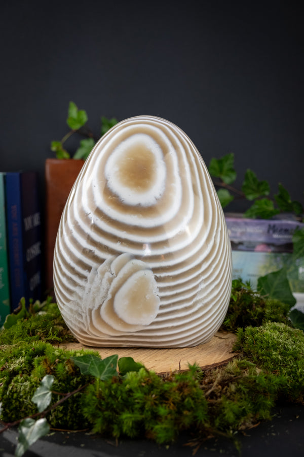 This Zebra Jasper polished freeform crystal is a grounding stone for balance, emotional stability and steady support during times of stress or change. Ethically sourced from the mineral rich landscapes of Madagascar, this brown and white Zebra Jasper is ideal for anyone feeling overwhelmed, energetically scattered or in need of calm grounding energy within their home or daily life.